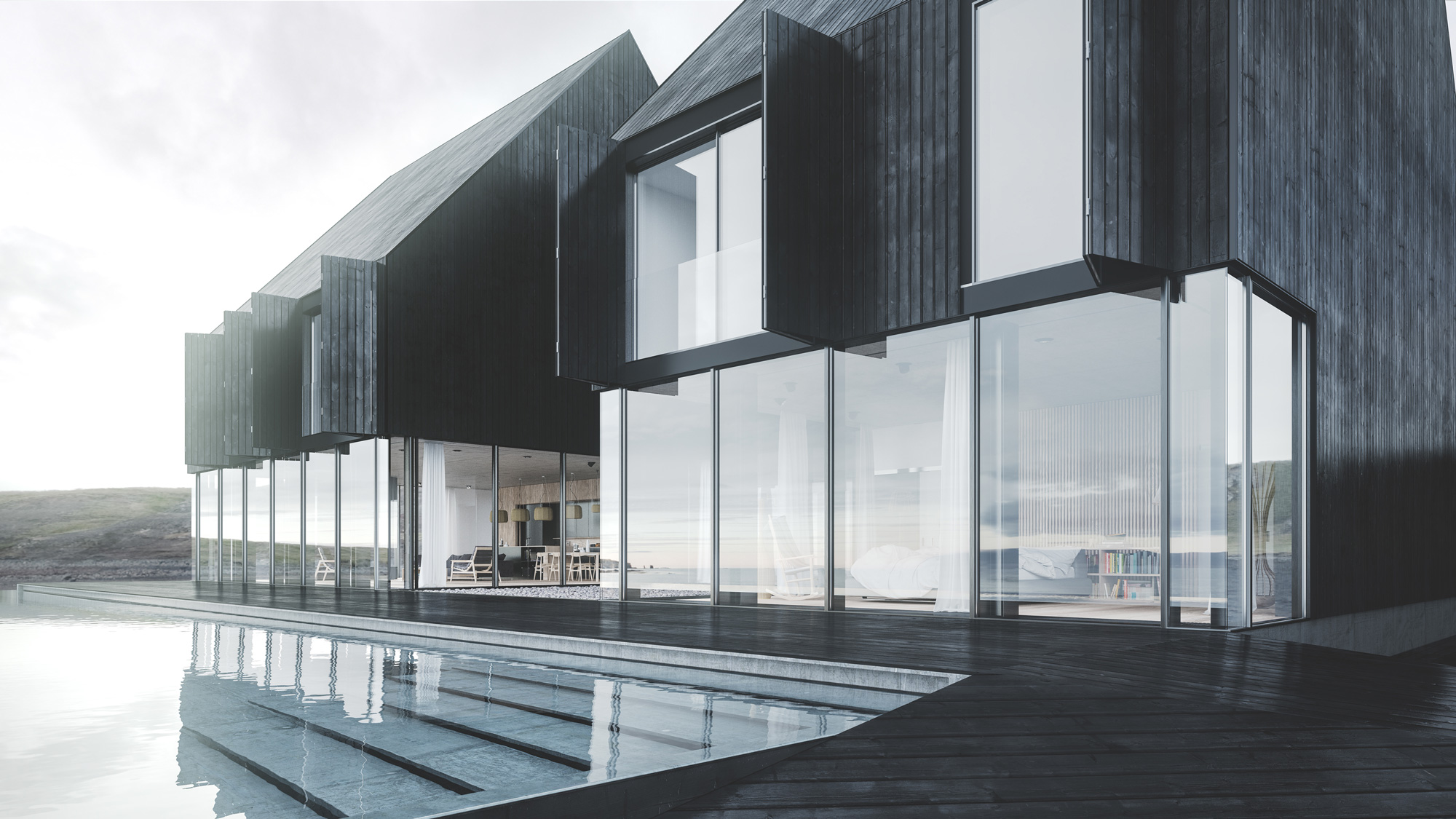 Incredible as always. This guys have excellent taste,modeling, texturing & rendering skills. The design fits in with what I would perceive as being Icelandic, the high wooden roof design and linear slatted interior elements and colours.